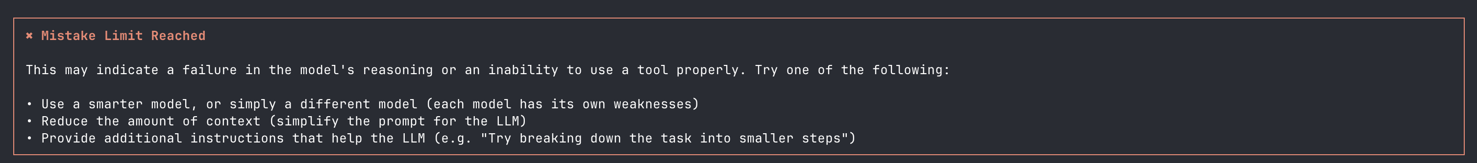 - too many tool calls without updating plan
